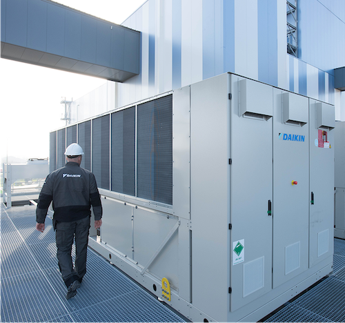 Eficiente y escalable, se destaca por su flexibilidad y su tamaño compacto. Utiliza refrigerante ecológico R410A y su programa de control electrónico demanda menores picos de carga y ahorra energía